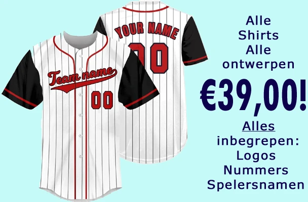 Schaf minstens 12 shirts aan van dit ontwerp in jouw teamkleuren en met jouw teamlogo's en betaal €35,00 per shirt inclusief alle opties, zoals nummer..